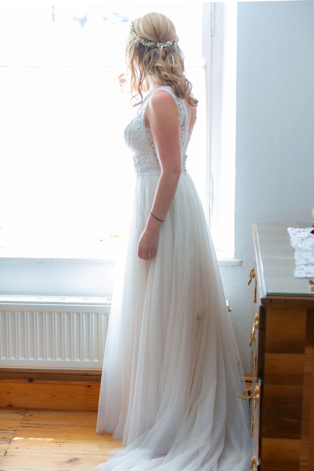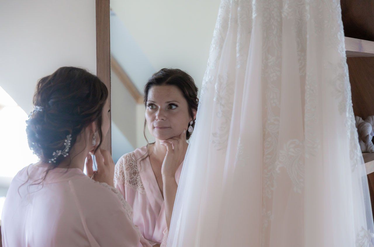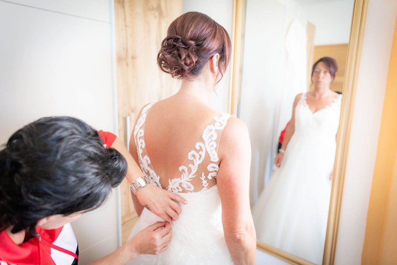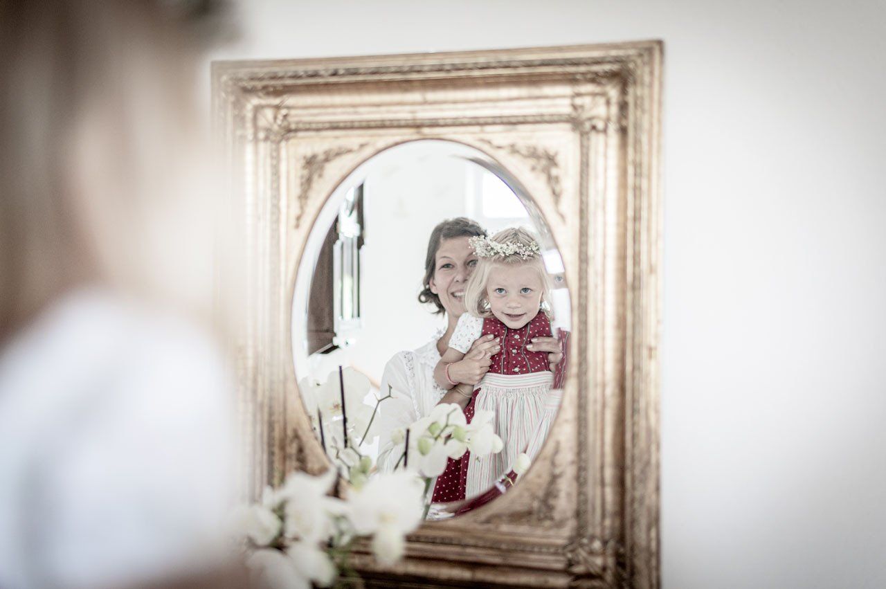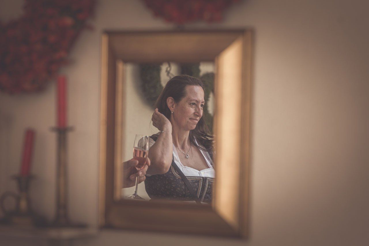 Einer der emotionalsten Momente einer Hochzeit ist der erste Blick, den der Bräutigam auf die fertige Braut werfen darf. Ich dokumentiere die Entstehung der wundervollen Braut als stiller Beobachter.