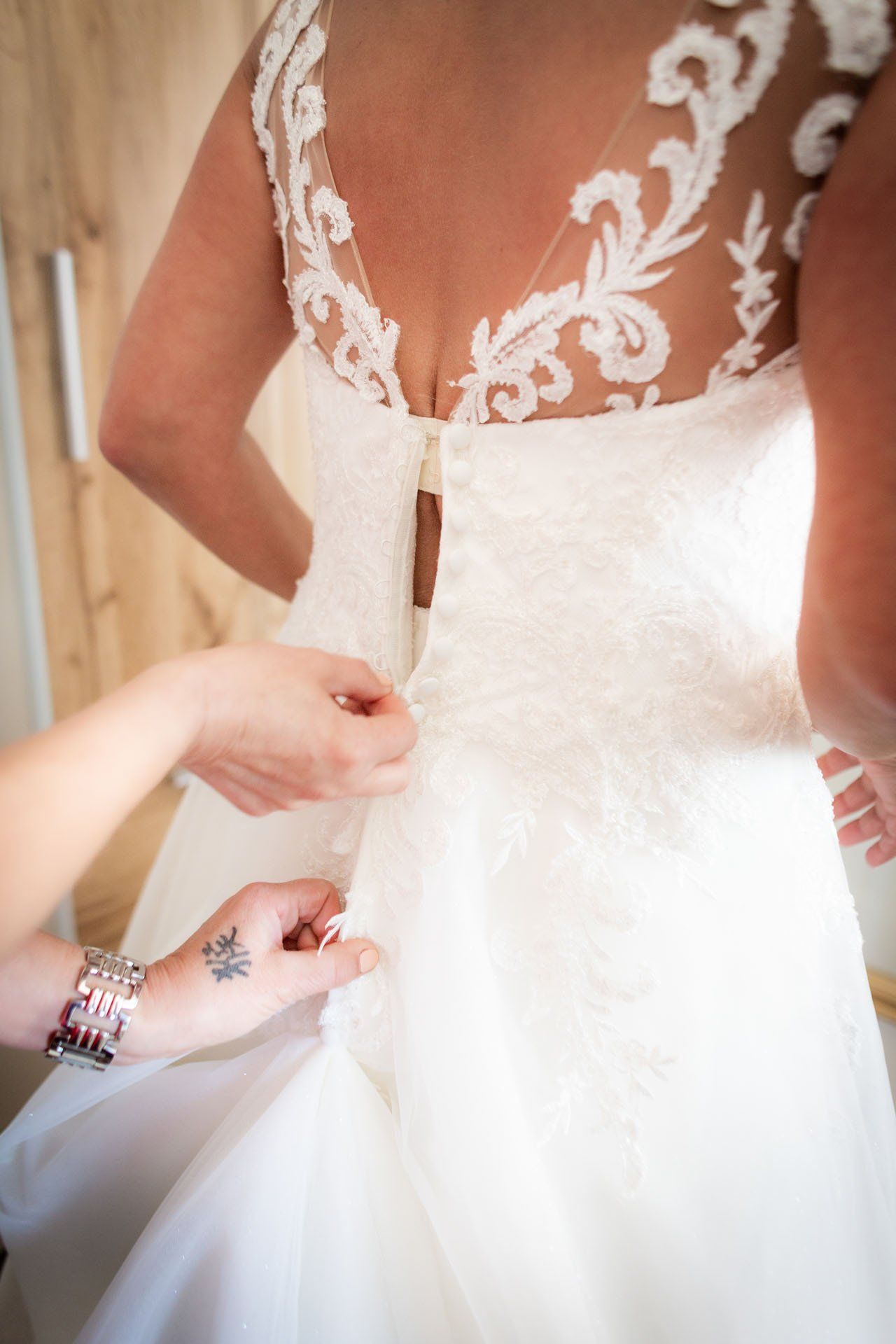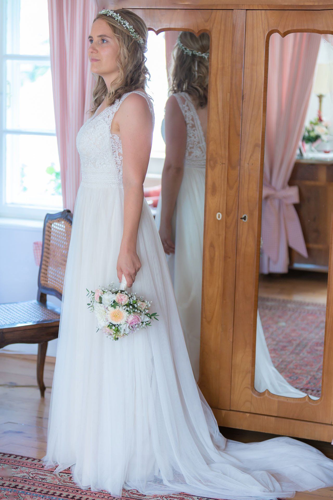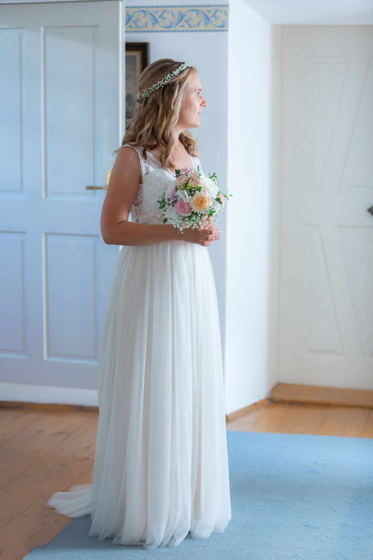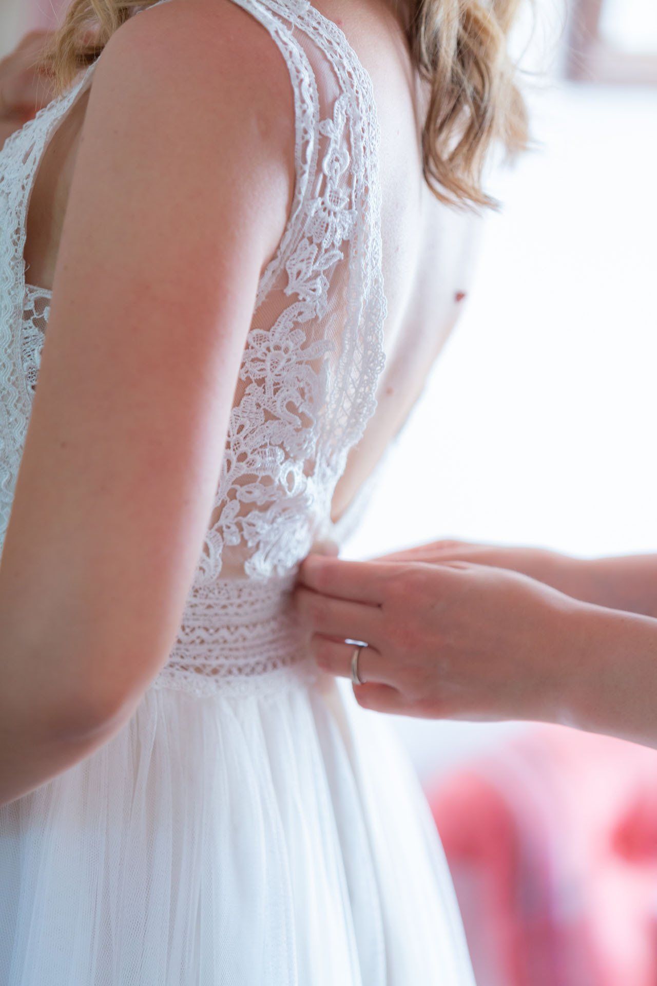 Einer der emotionalsten Momente einer Hochzeit ist der erste Blick, den der Bräutigam auf die fertige Braut werfen darf. Ich dokumentiere die Entstehung der wundervollen Braut als stiller Beobachter.