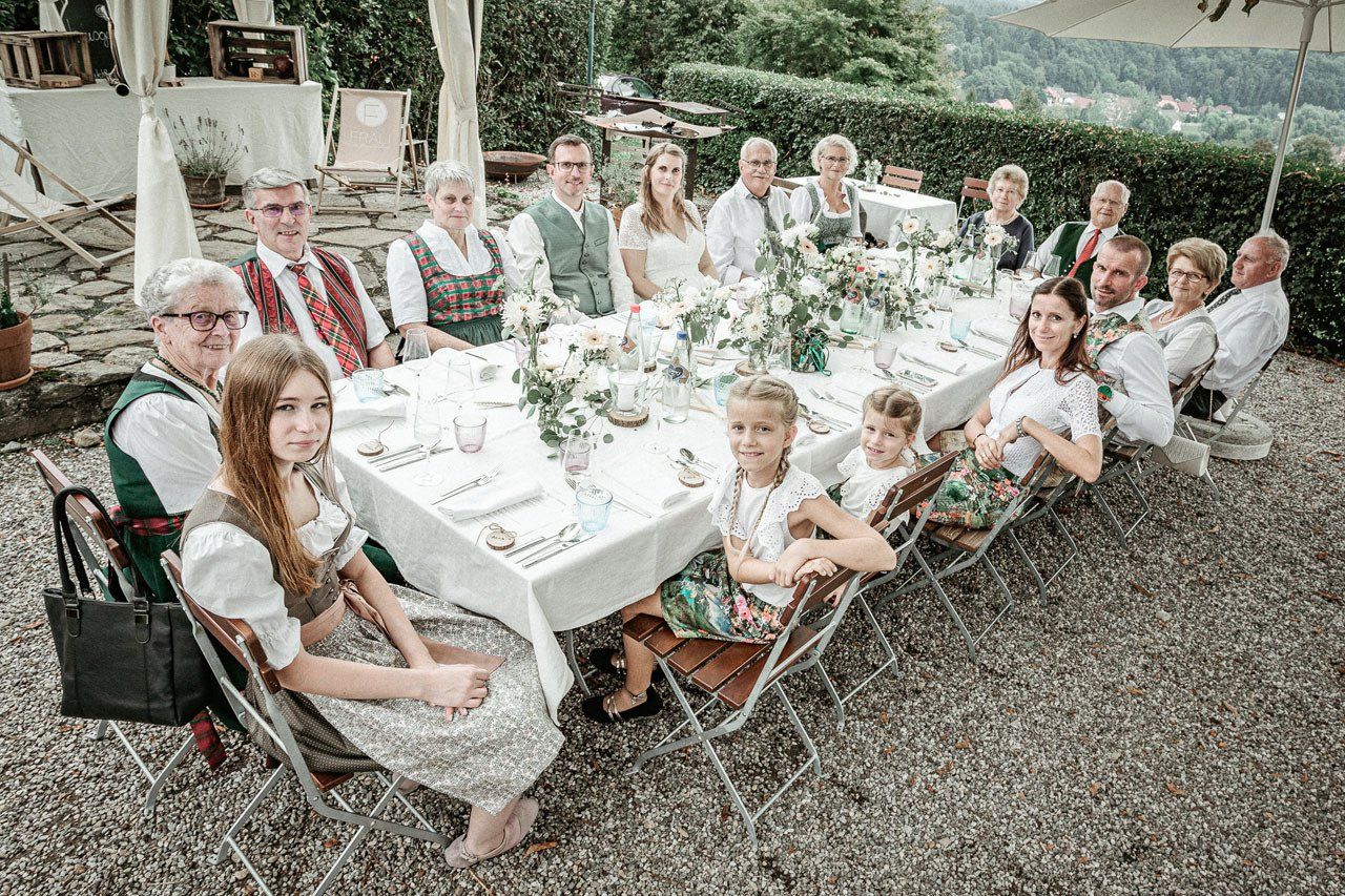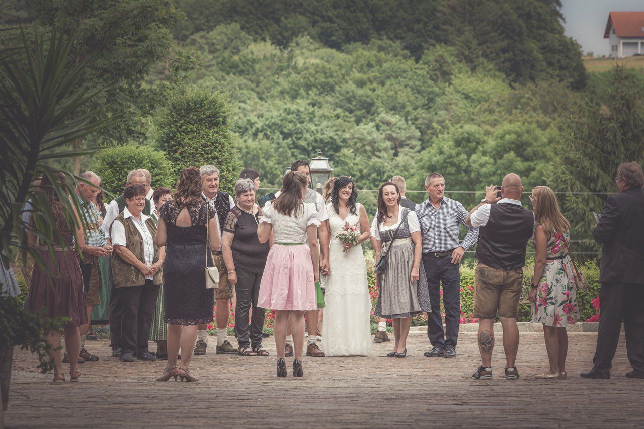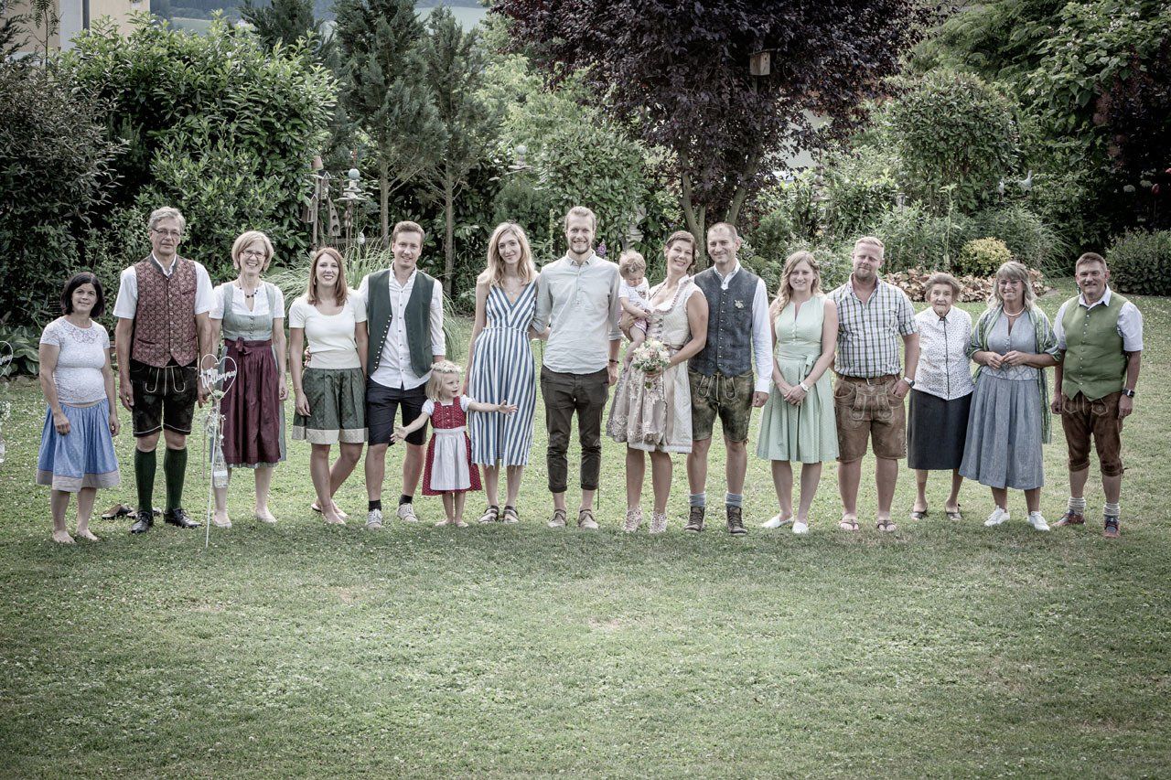 Für das Foto mit allen Hochzeitsgästen suchen wir gemeinsam die Örtlichkeit und Location aus und lassen so ein stimmungsvolles Hochzeitsfoto entstehen.