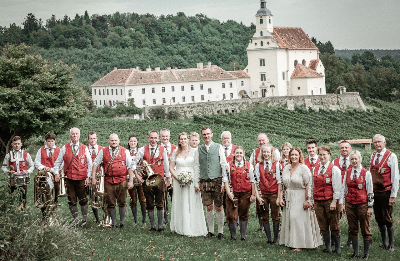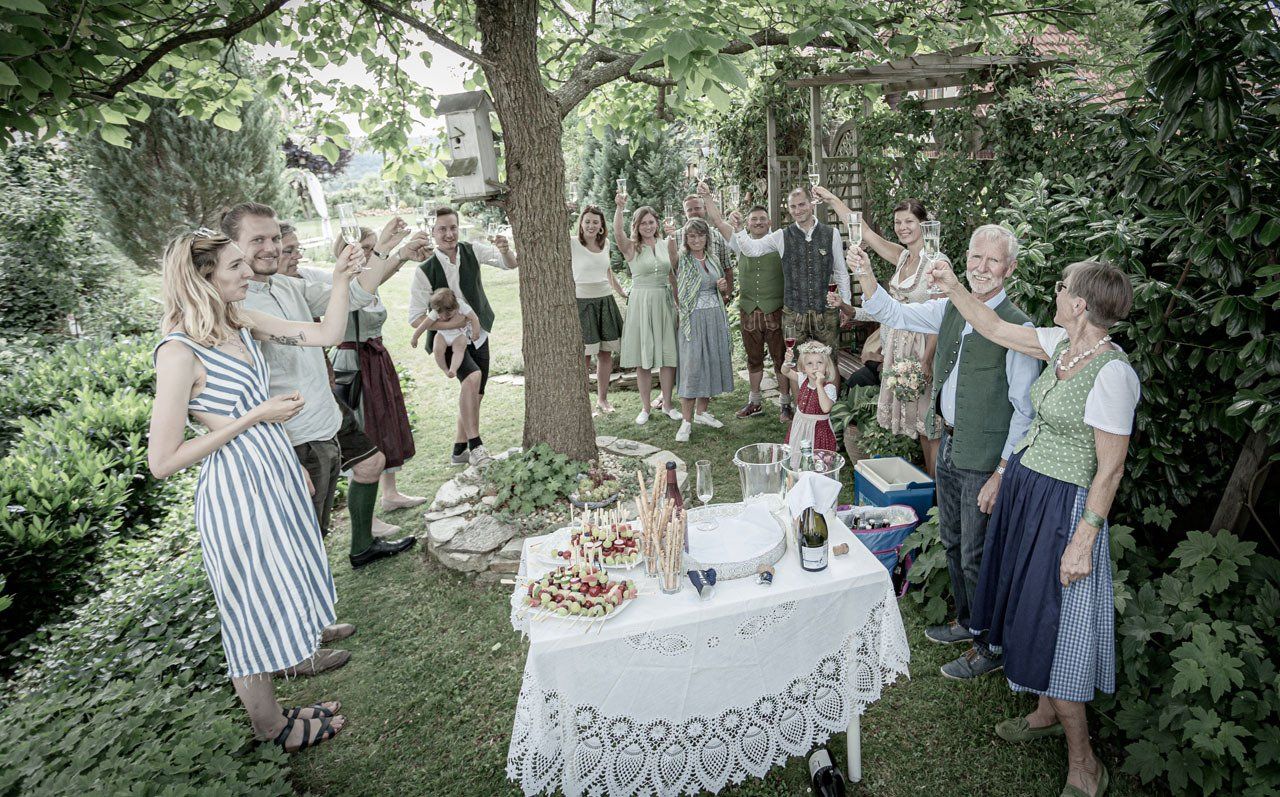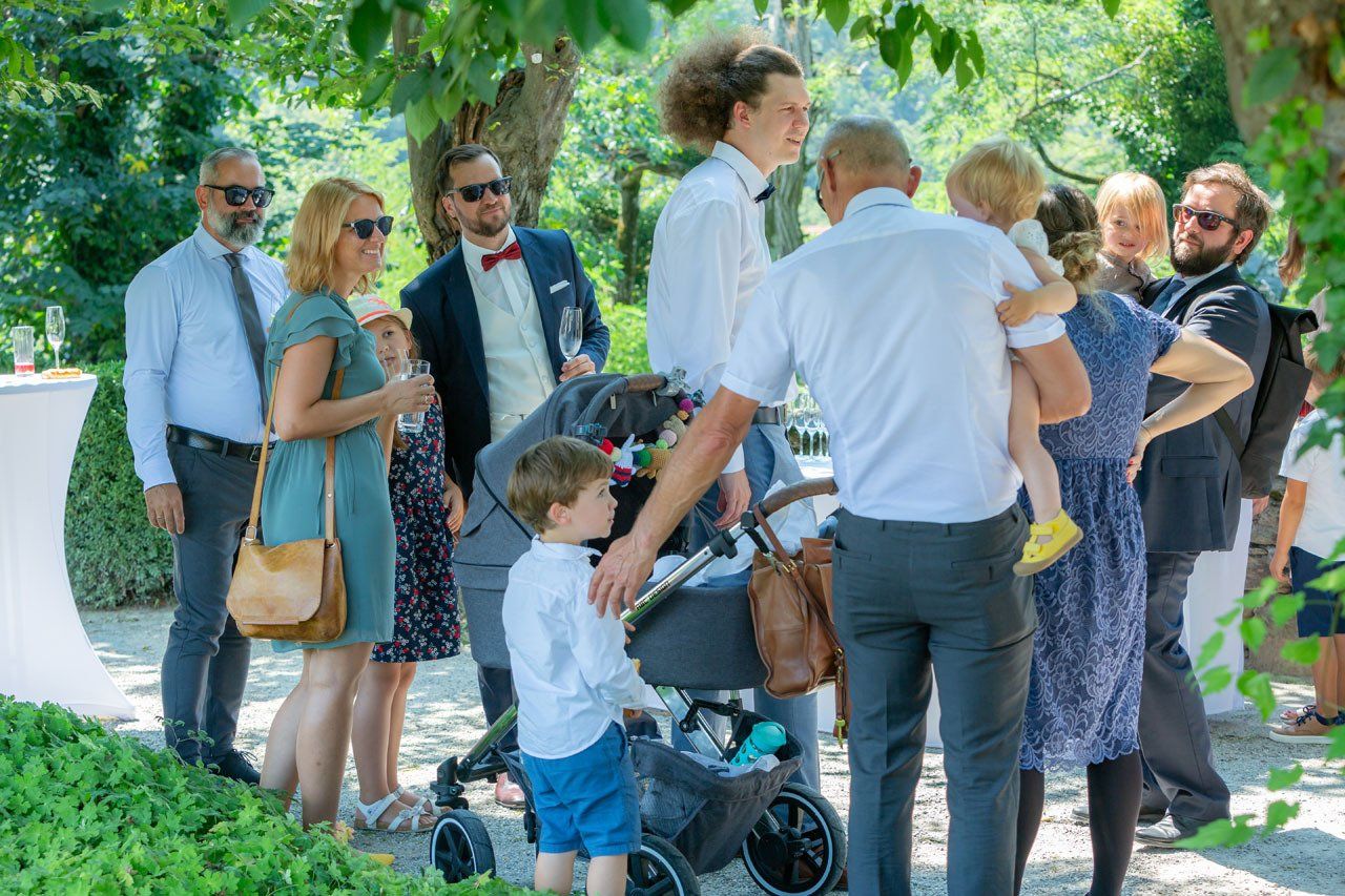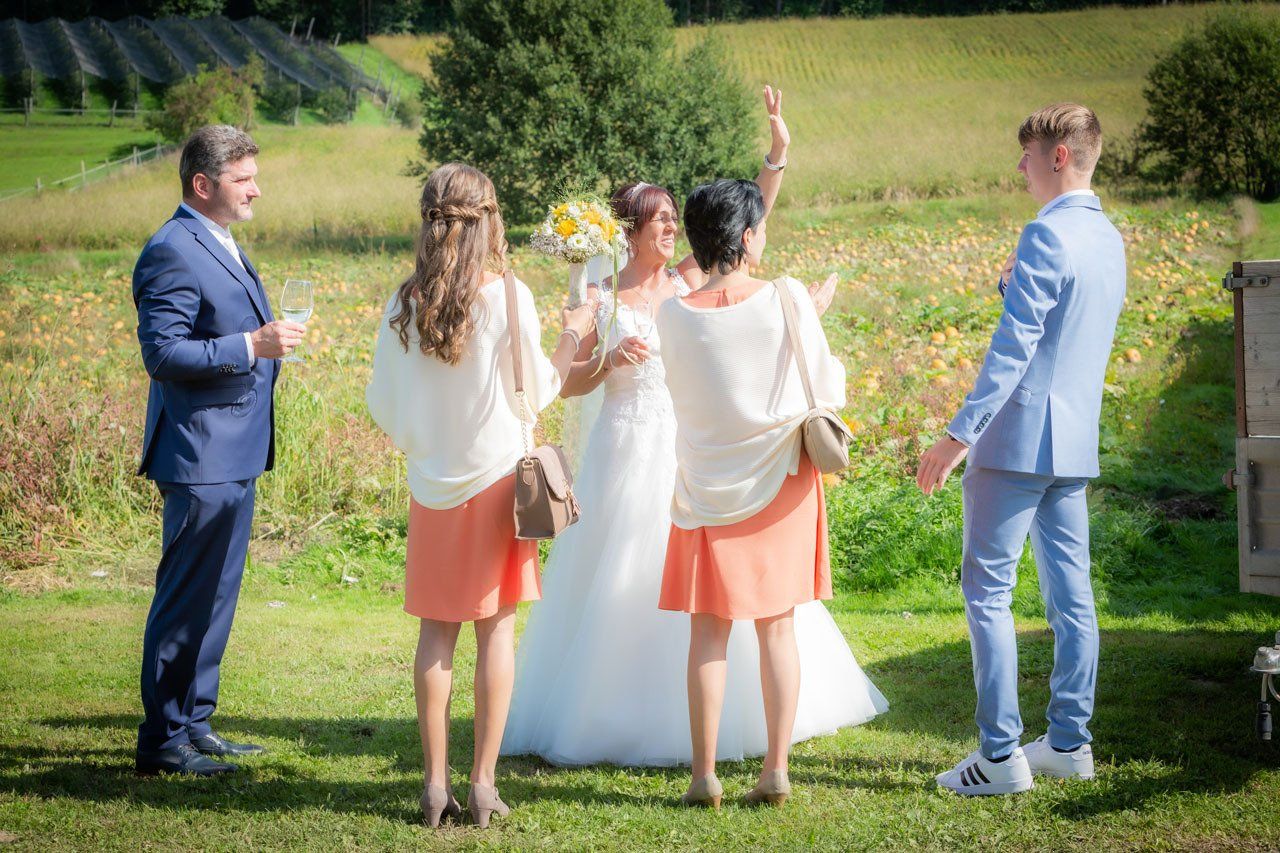 Für das Foto mit allen Hochzeitsgästen suchen wir gemeinsam die Örtlichkeit und Location aus und lassen so ein stimmungsvolles Hochzeitsfoto entstehen.