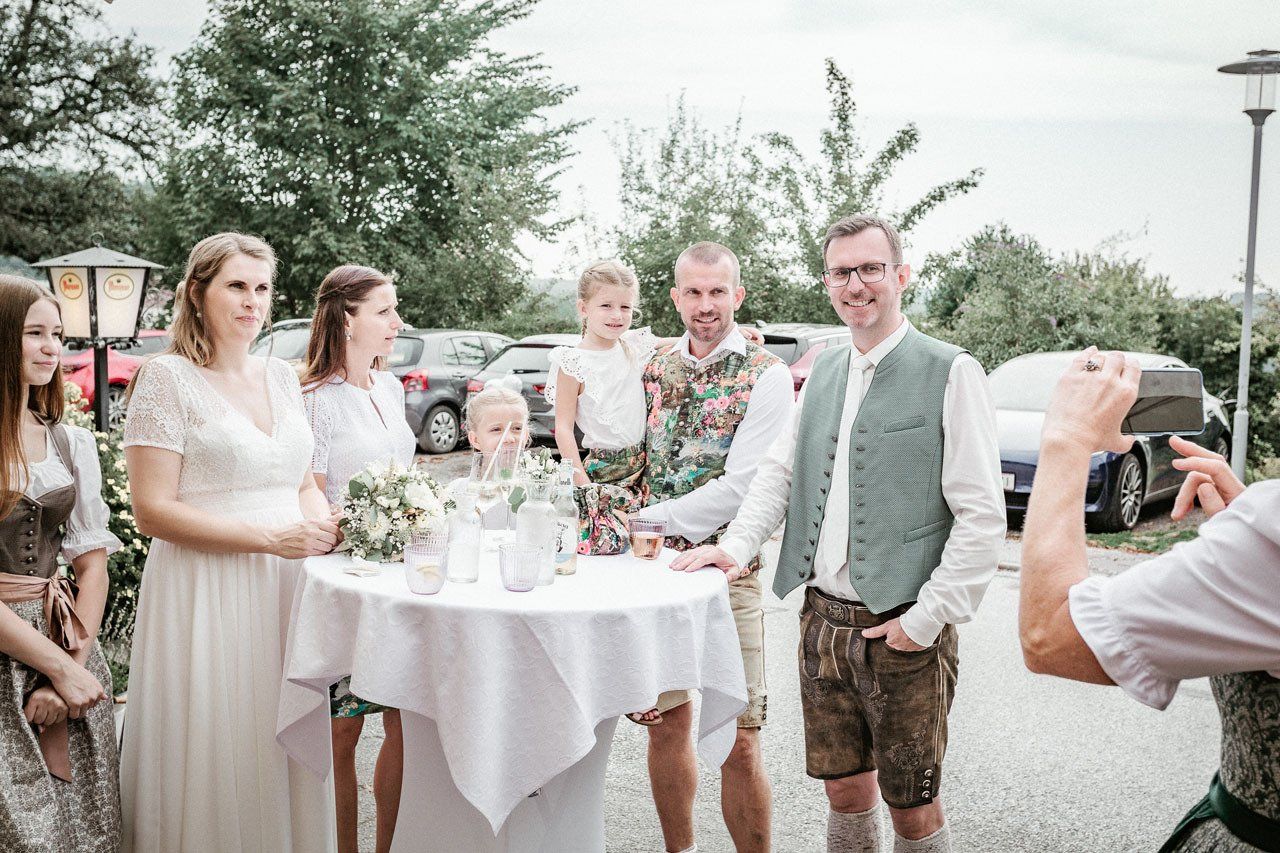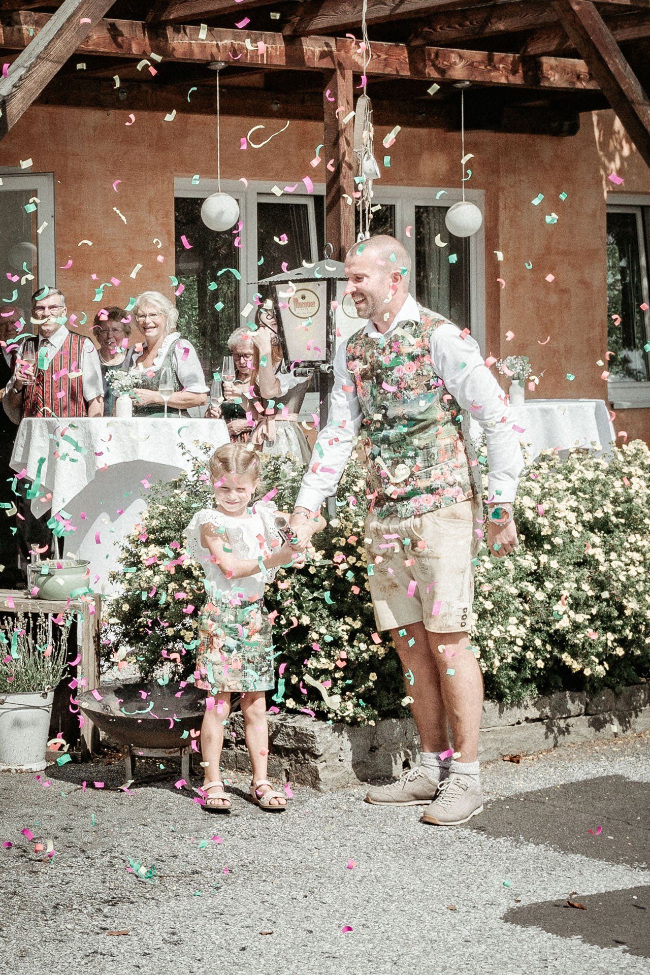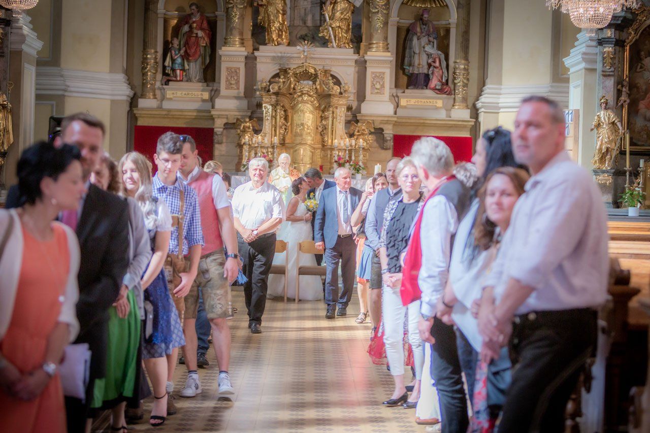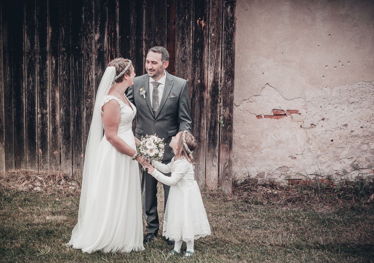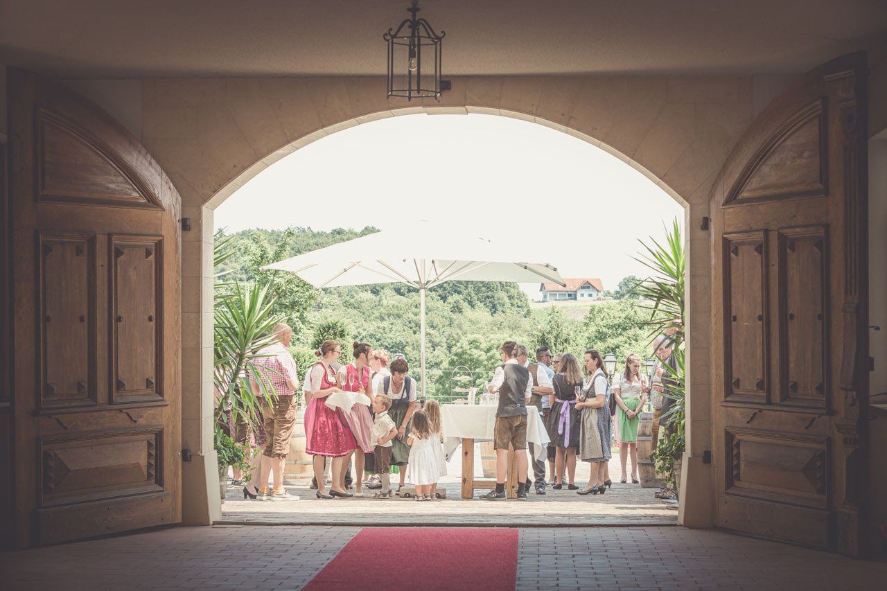 Nach der Trauung begibt sich das Brautpaar in der Regel vor die Kirche oder das Standesamt. Das ist der ideale Moment für herzliche, unvergessliche Bilder mit Ihren Verwandten und Freunden.