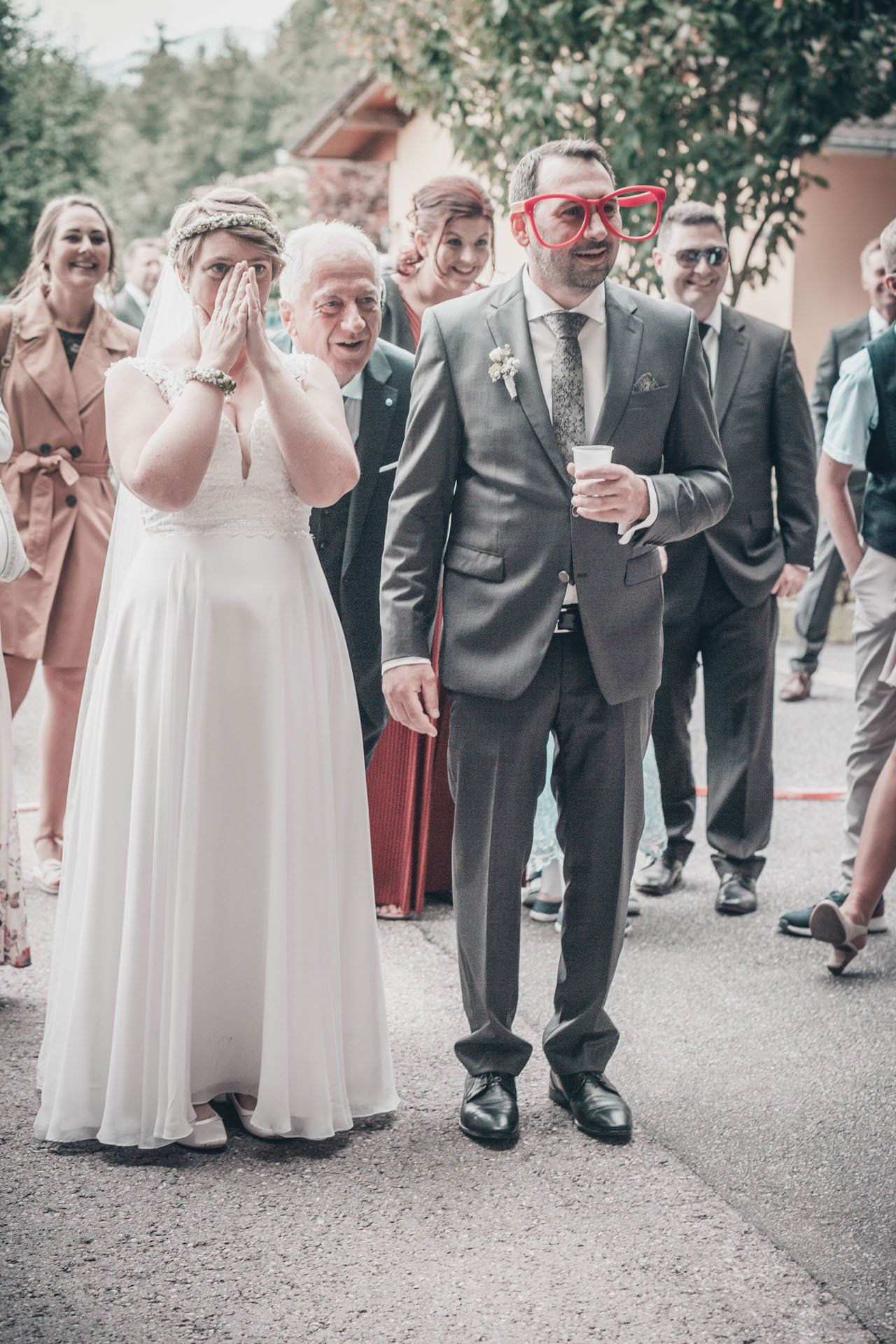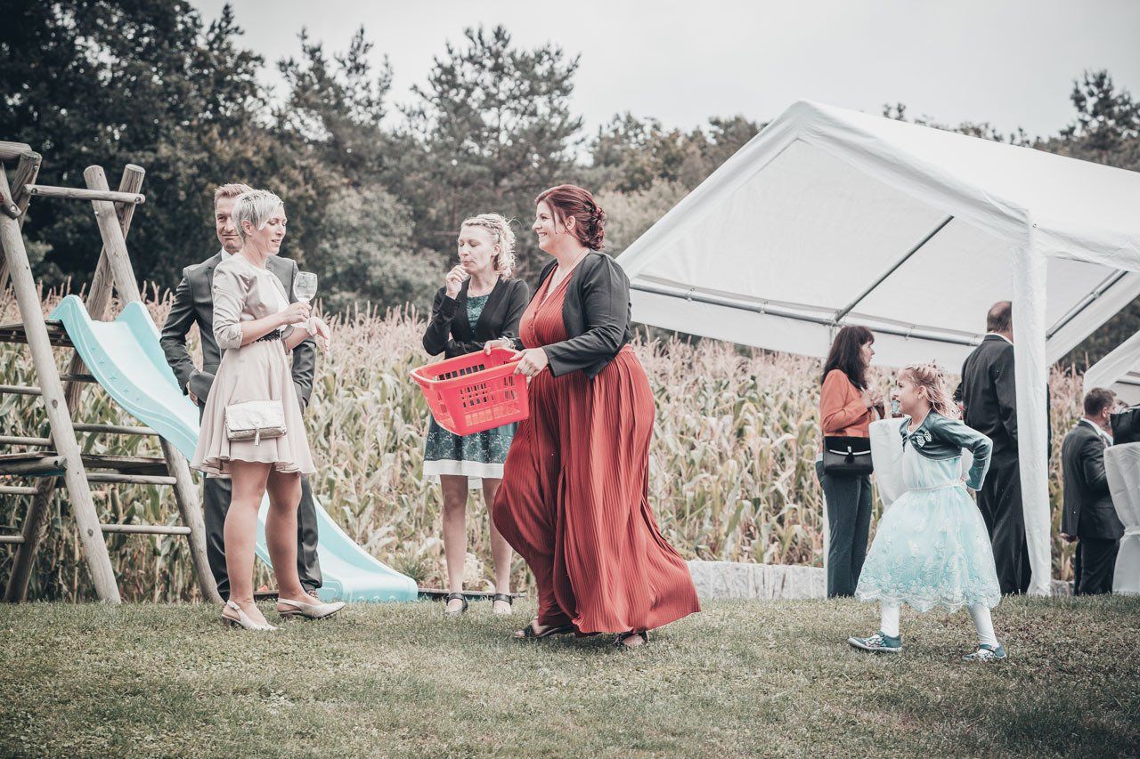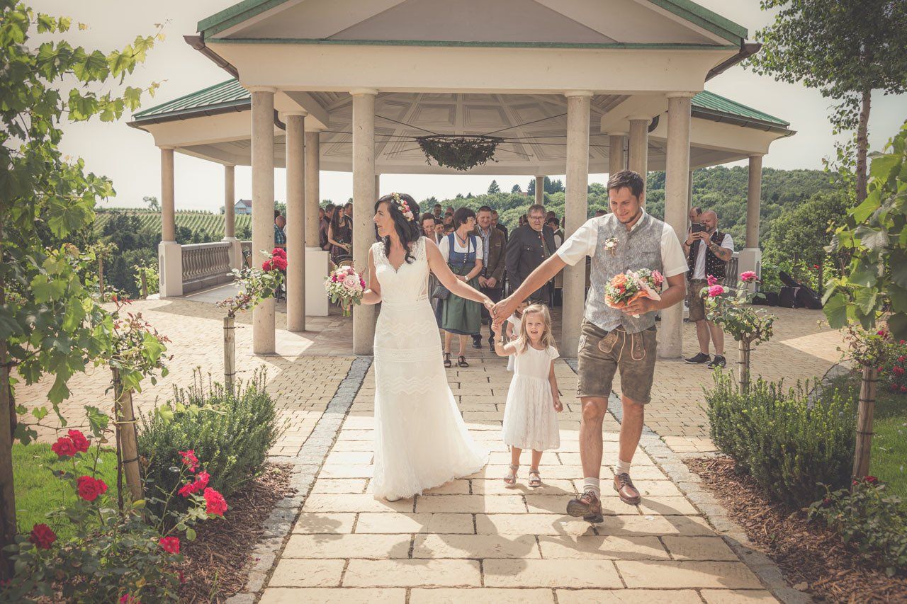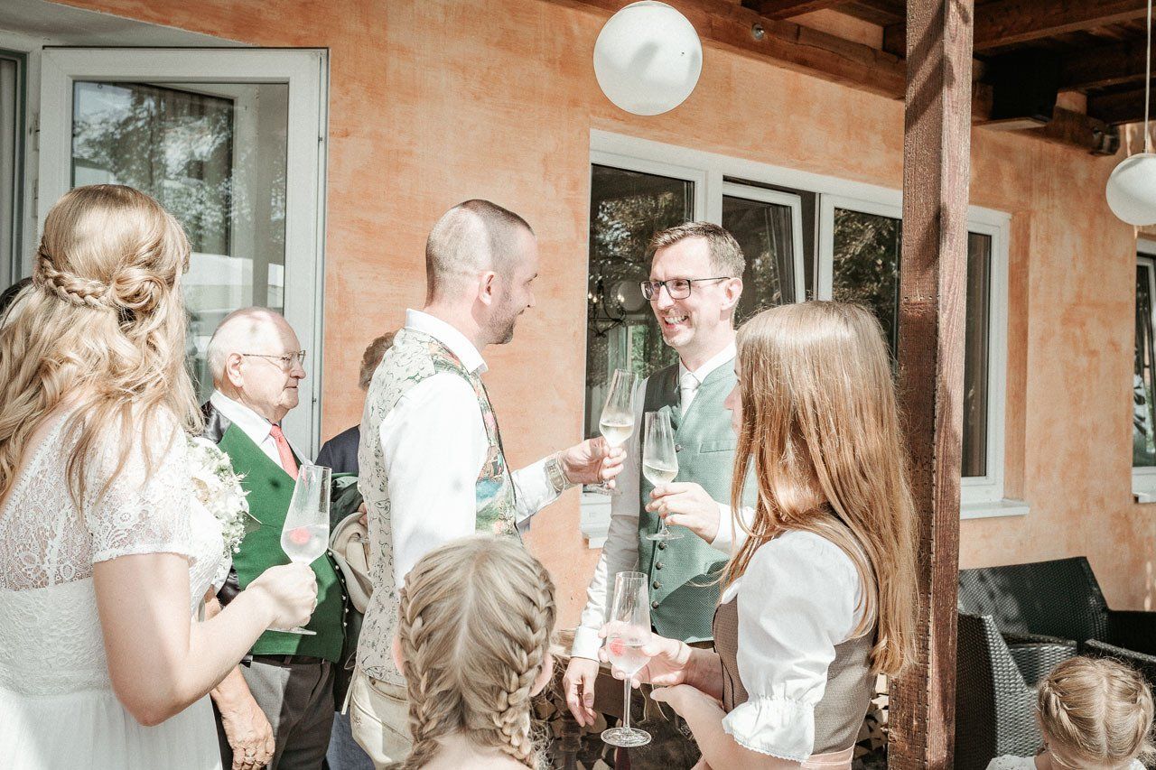 Nach der Trauung begibt sich das Brautpaar in der Regel vor die Kirche oder das Standesamt. Das ist der ideale Moment für herzliche, unvergessliche Bilder mit Ihren Verwandten und Freunden.