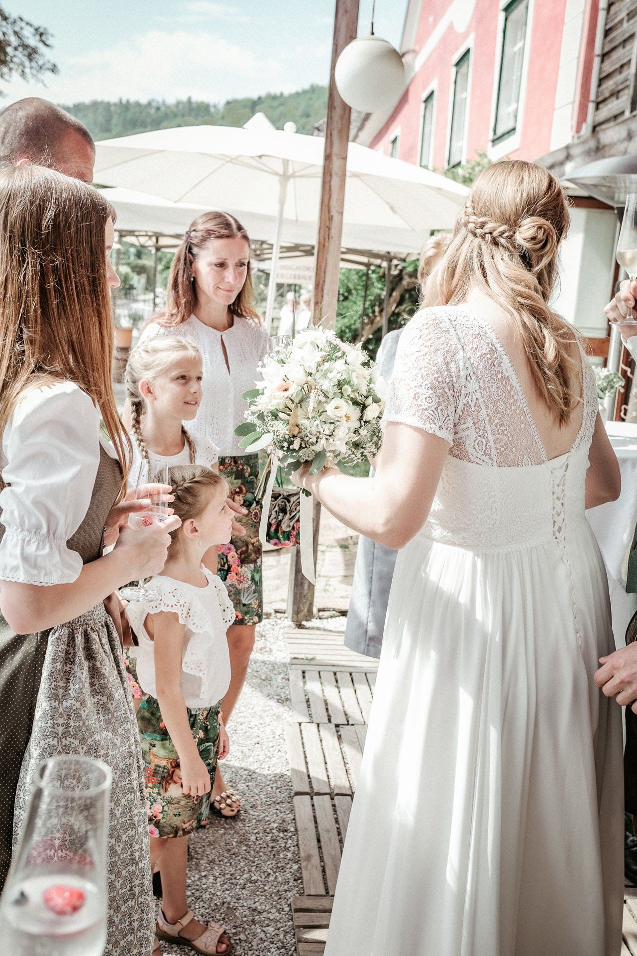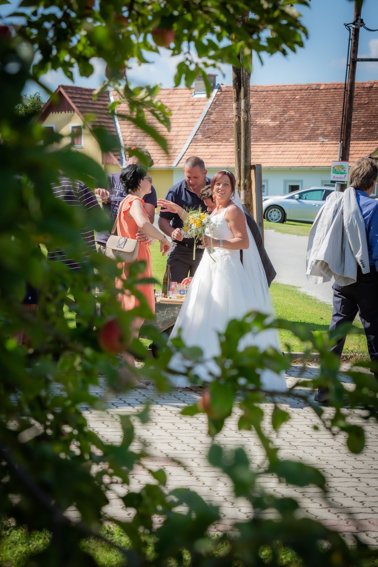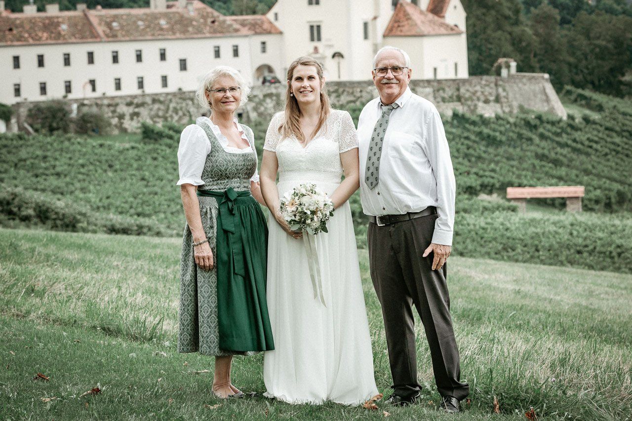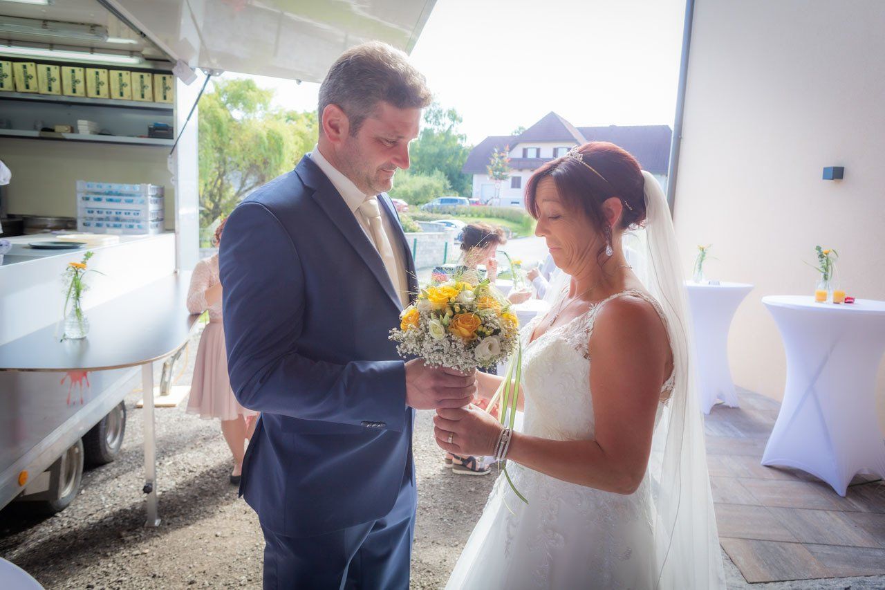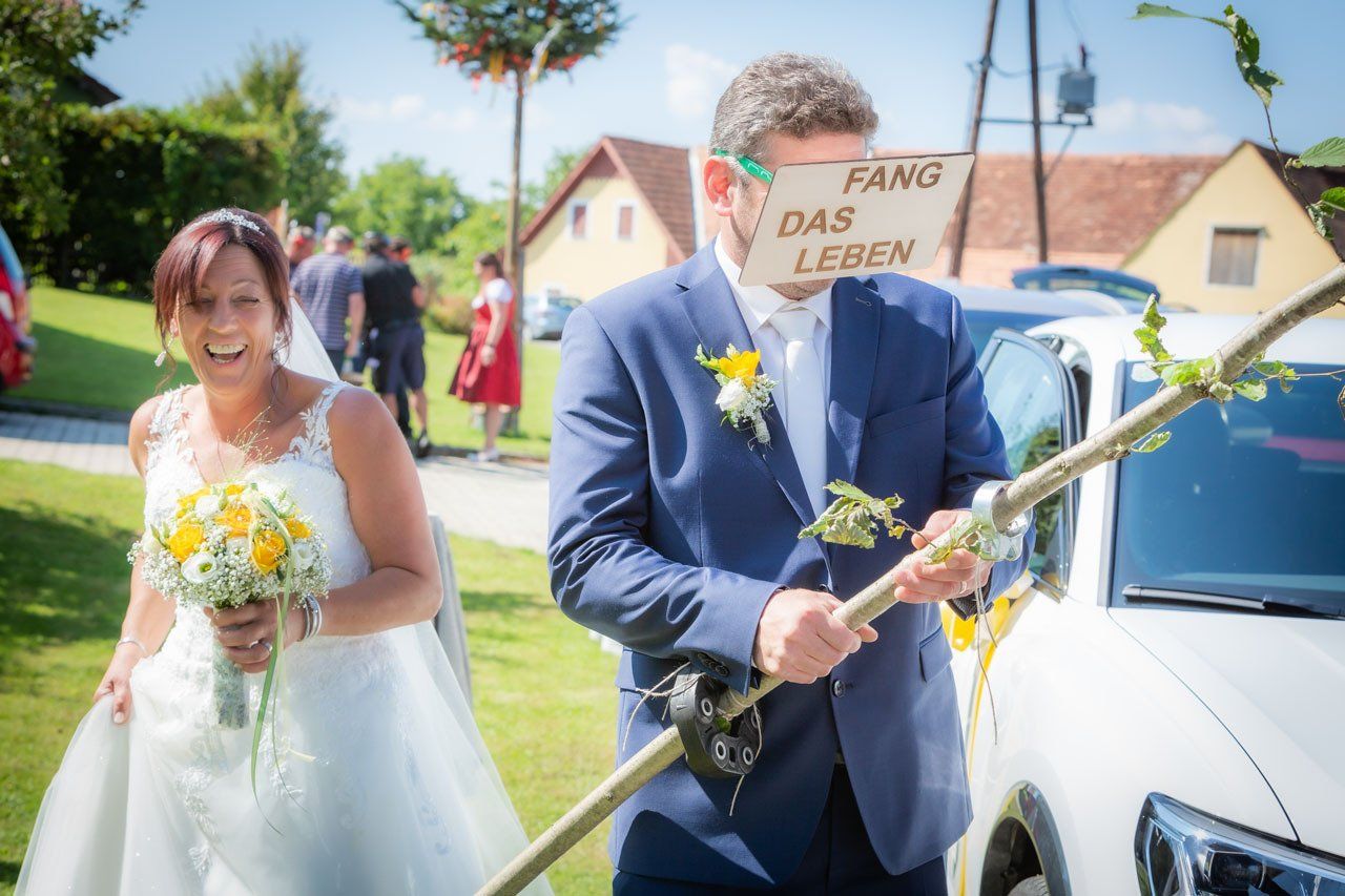 Nach der Trauung begibt sich das Brautpaar in der Regel vor die Kirche oder das Standesamt. Das ist der ideale Moment für herzliche, unvergessliche Bilder mit Ihren Verwandten und Freunden.